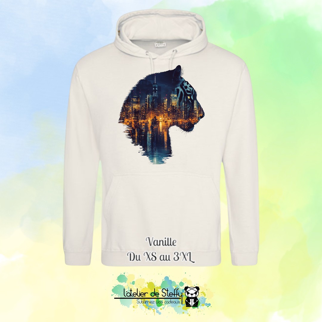 Le choix de couleurs le plus fou de l’atelier pour un sweat capuche cool et décontracté.